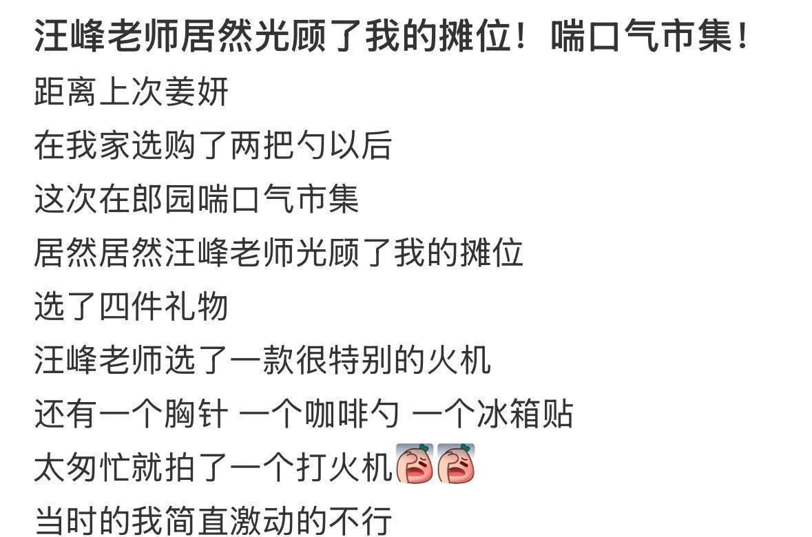 汪峰还在饰品摊位看了好久,和一群中年女性一起在那儿聚精会神地挑耳环,疑似要送给女友森林北。